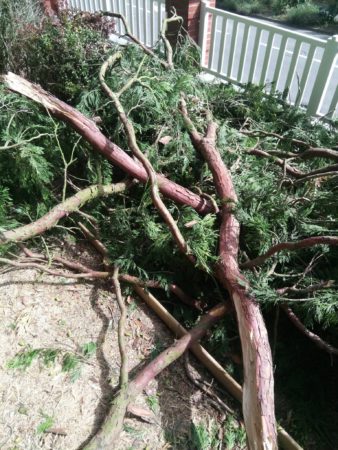 La décision a été dure à prendre après le passage du bûcheron : il faut l’abattre. Plus de 20 m de haut et 2m de diamètre….Je m’absenterai le jour de sa coupe,pas question de regarder ça. Bon, en même temps, si les seules larmes qui me viennent sont provoquées par la mort d’un sequoia, c’est que tout le reste va bien, non ?.