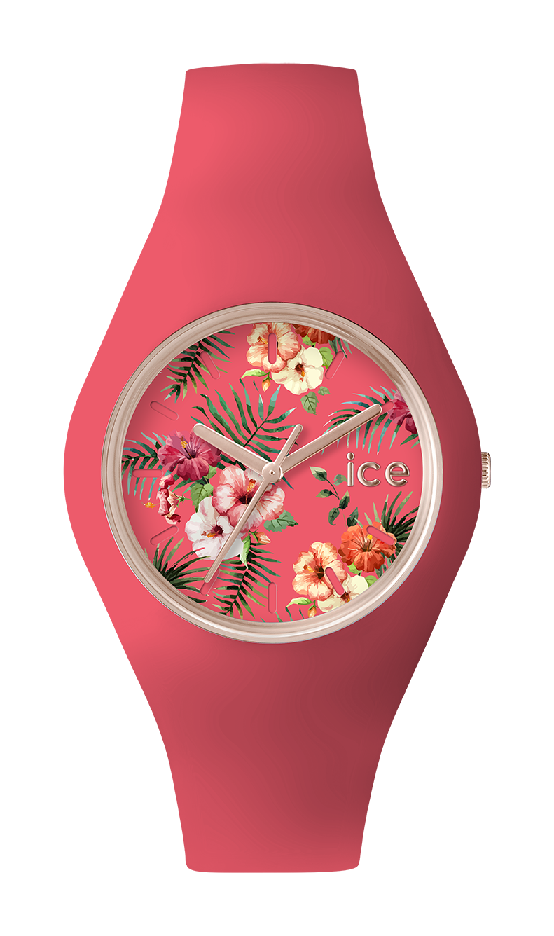 Des roses, des fleurs de pavot, des hibiscus, des gardénias de Tahiti, entre autres, ornent les cadrans des ICE FLOWER proposées dans une quinzaine de couleurs. Si certains