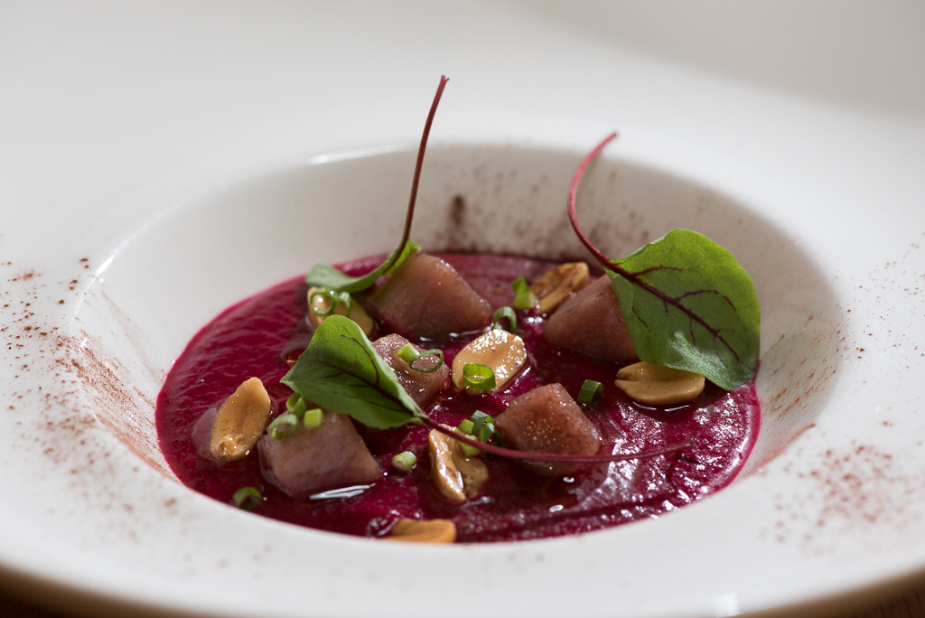 Les entrées sont à 8,50 €. A tester absolument : le Gaspacho de betterave au vinaigre de framboise, thon fumé, cacahuètes et cacao ou le Petit carpaccio de poulpe, pommes grenailles, persillade et pimentón de la Vera.