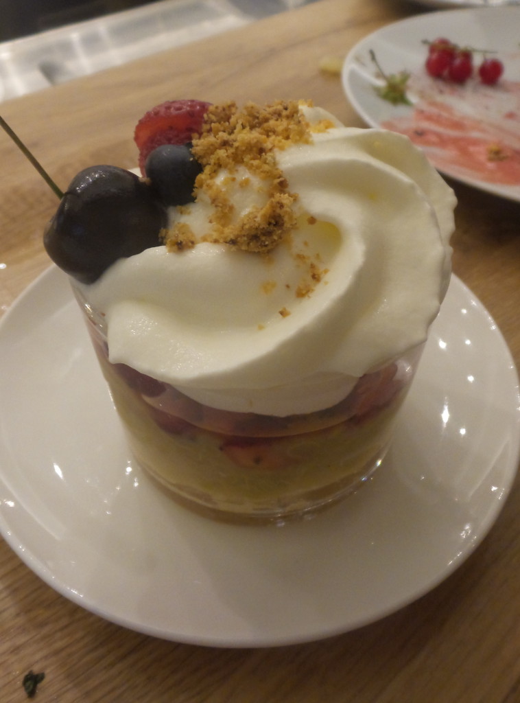 Côté dessert, c’est aussi réjouissant. De la couleur, de la saveur et (c’est le mot à la mode dans les émissions de télé dédiées à la cuisine: de la texture). Le gâteau au chocolat est divin ! Et comme il est présenté en une seule part, on peut jouer sans vergogne les égoïstes en refusant de le partager. C’est ce que j’ai fait !
